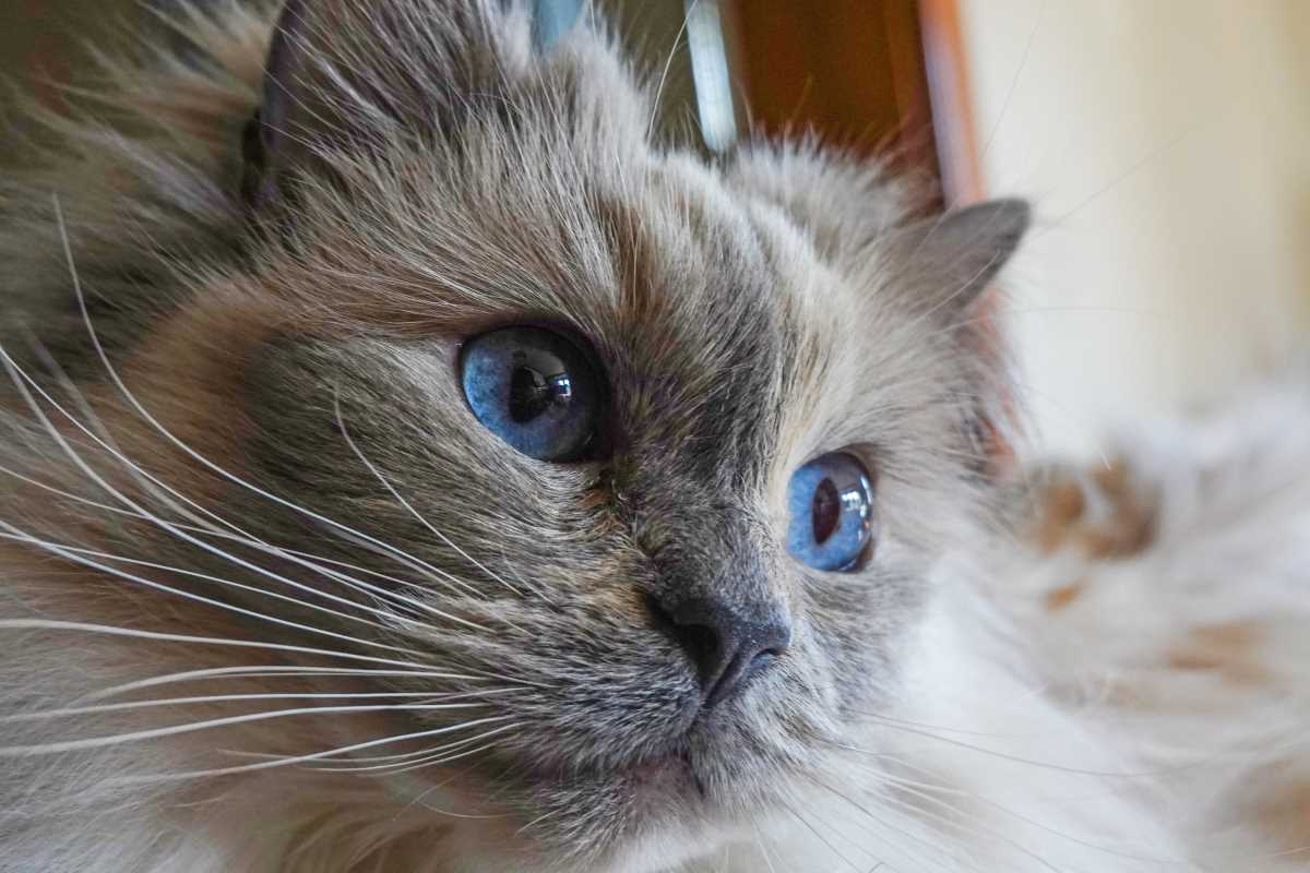 The Ragdoll cat is known for its stunning blue eyes and silky fur coat. They are a large, affectionate breed that enjoys being around people and other pets. Ragdolls are known for their docile nature and love to be held and cuddled.